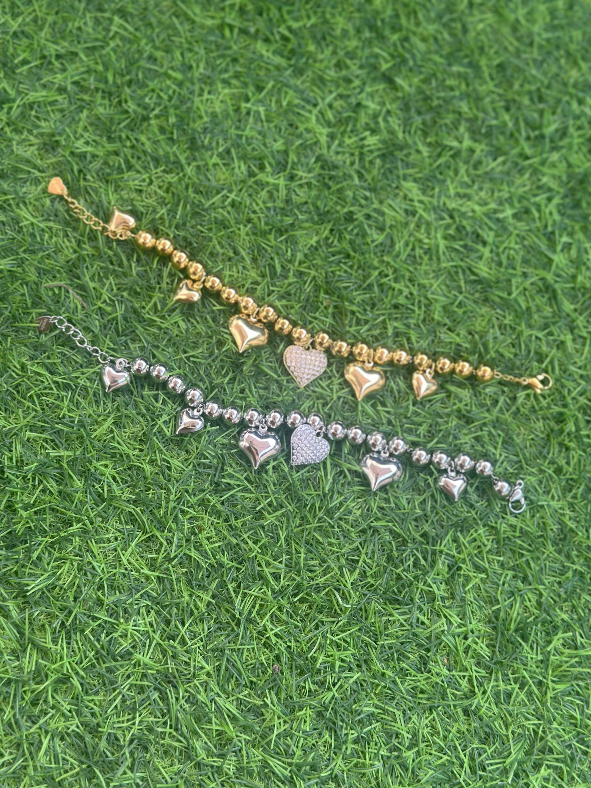 Bracciale in acciaio inox con 5 cuori e un bracciale sonagli porta fortuna