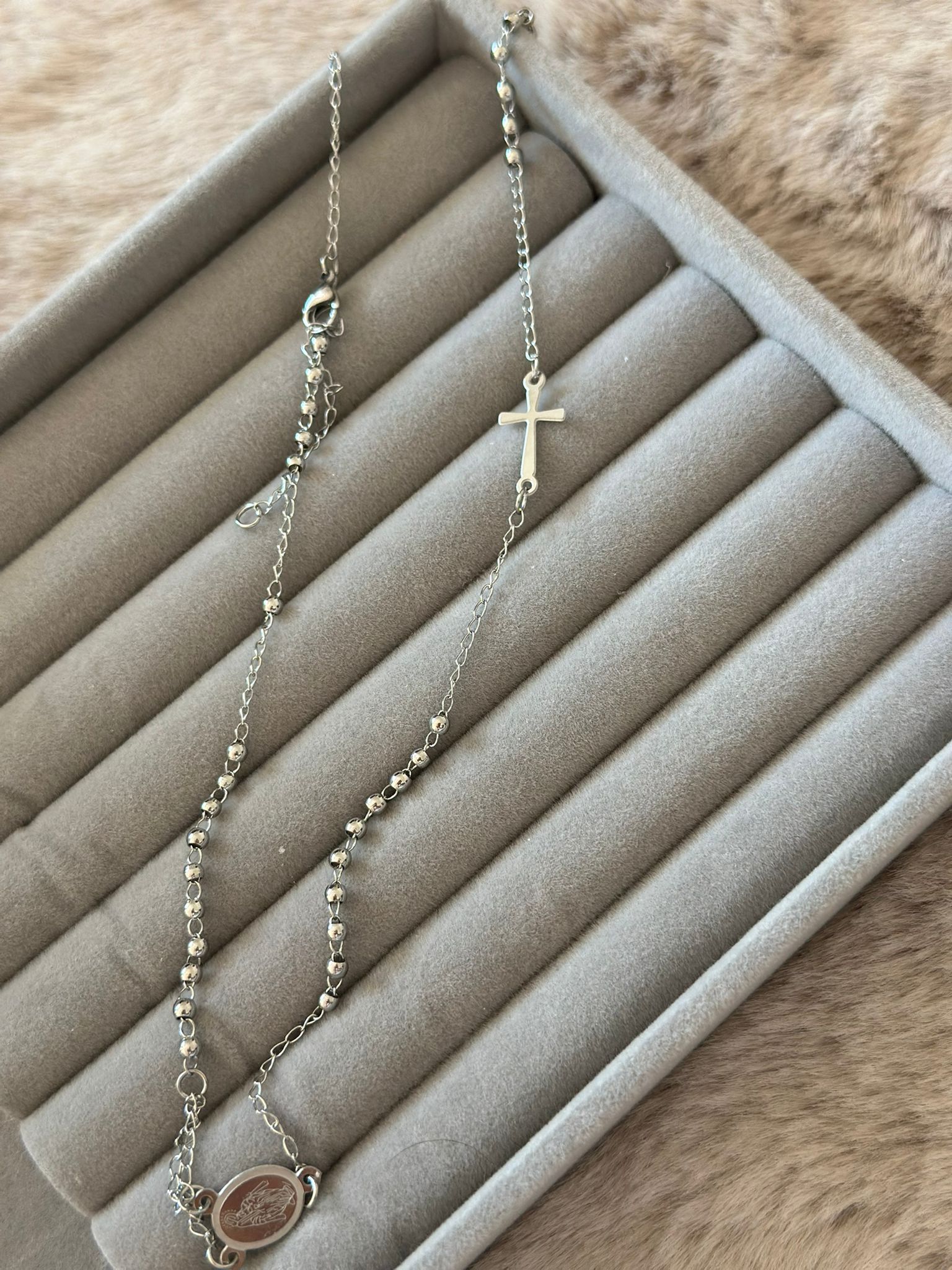 Rosario argento acciaio inossidabile
